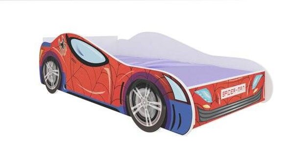 Eenpersoonsbed, Spiderman autobed patroon, compleet met frame en schuimmatras