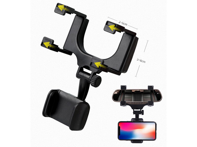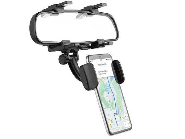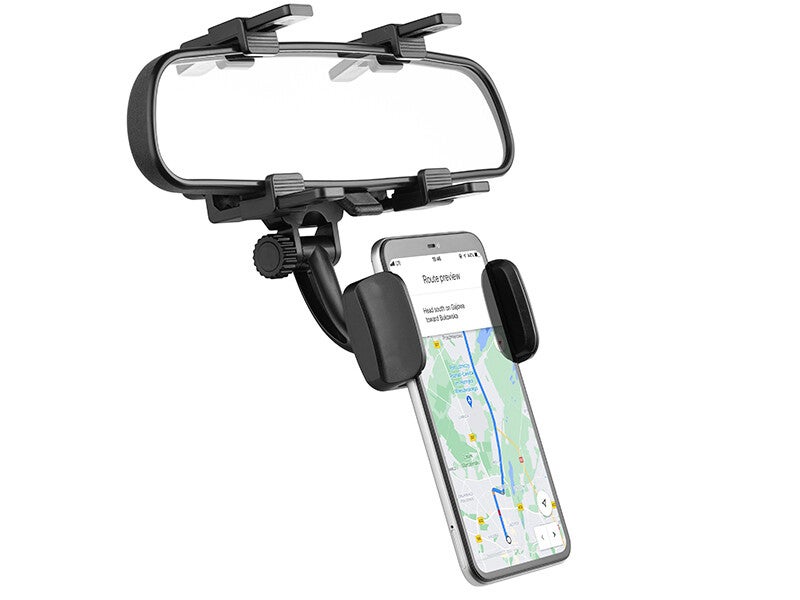 De Tracer Autohouder is ontworpen om op de achteruitkijkspiegel te worden gemonteerd voor eenvoudige en snelle toegang tot je apparaat. Dankzij het eenvoudige ontwerp en de intuïtieve bediening kan het apparaat gemakkelijk worden gemonteerd, verwijderd en in positie worden gebracht. Door de plaatsing onder de achteruitkijkspiegel kun je naar het scherm kijken zonder je ogen te ver van de weg te houden.