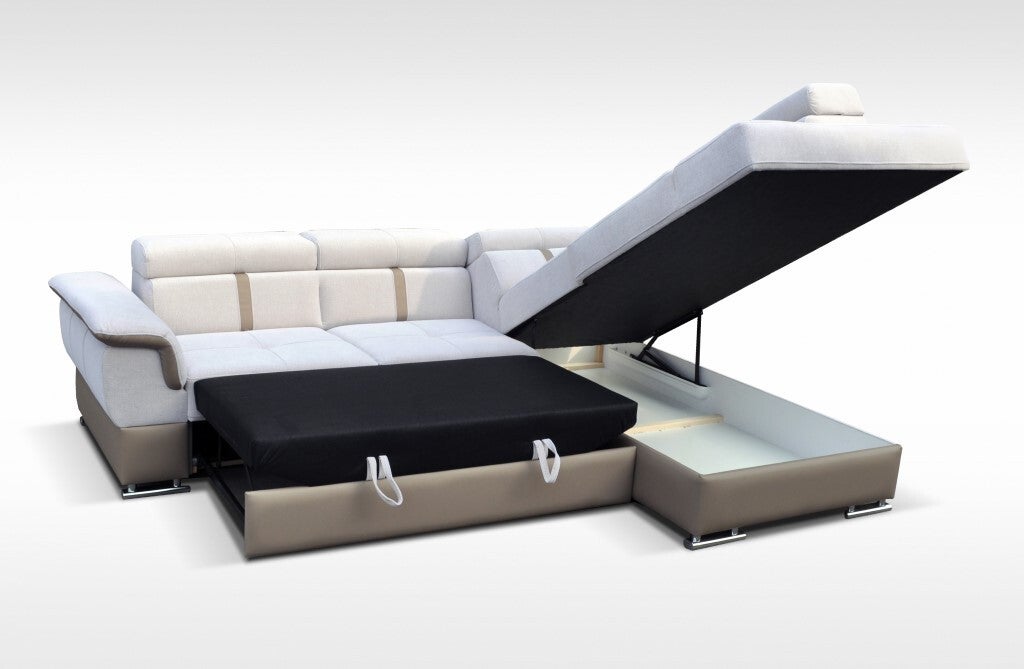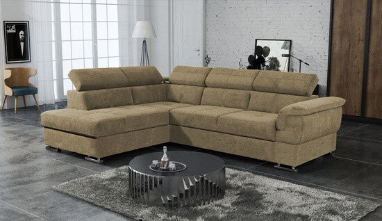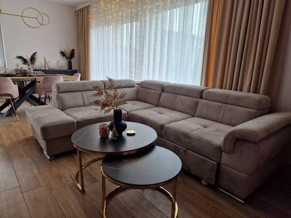 Deze hoekbank maakt niet alleen indruk met zijn ontwerp, maar voldoet ook aan praktische behoeften. De slaapfunctie maakt het meubel tot een ideale plek om uit te rusten, niet alleen overdag, maar ook tijdens de nachtelijke ontspanningsmomenten. Bovendien kun je in de ingebouwde opbergruimte dekbedden, kussens of beddengoed opbergen, zodat de ruimte altijd netjes en opgeruimd blijft.