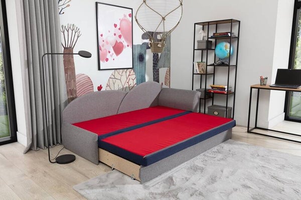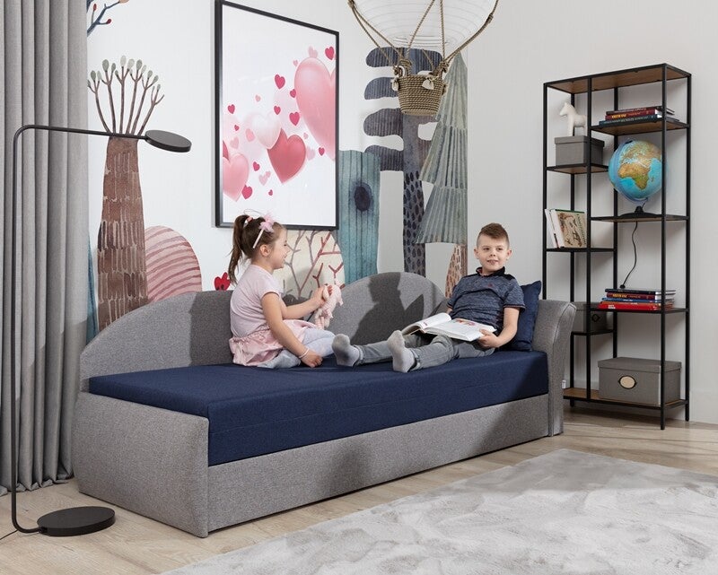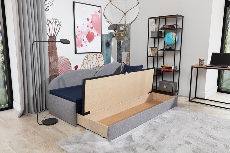 Bank Aga P rechts, zwart-grijs, uitklapbare bank met beddegoedlade