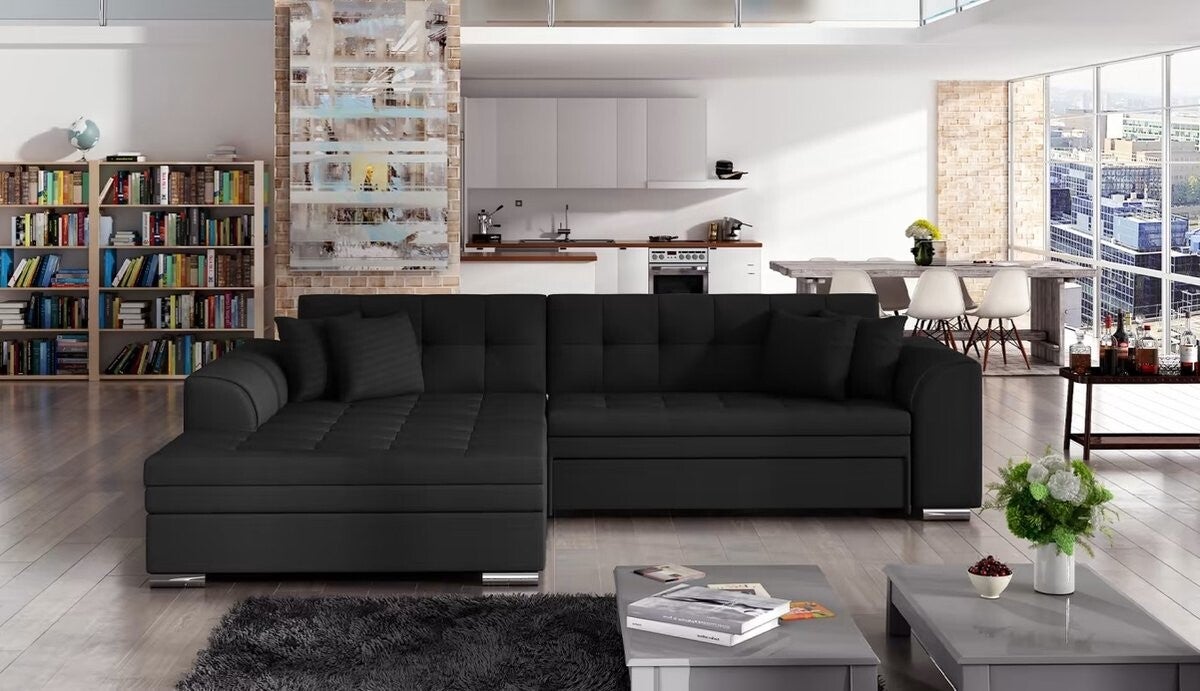 Hoekbank - Sorento L - Zwart - 295 x 195 cm - Hoekbank met slaapfunctie - grote hoekbank