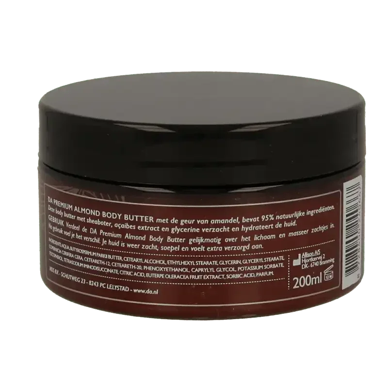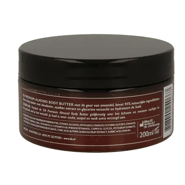 DA Premium Almond body butter met de geur van amandel, bevat minimaal 95% natuurlijke ingrediënten.