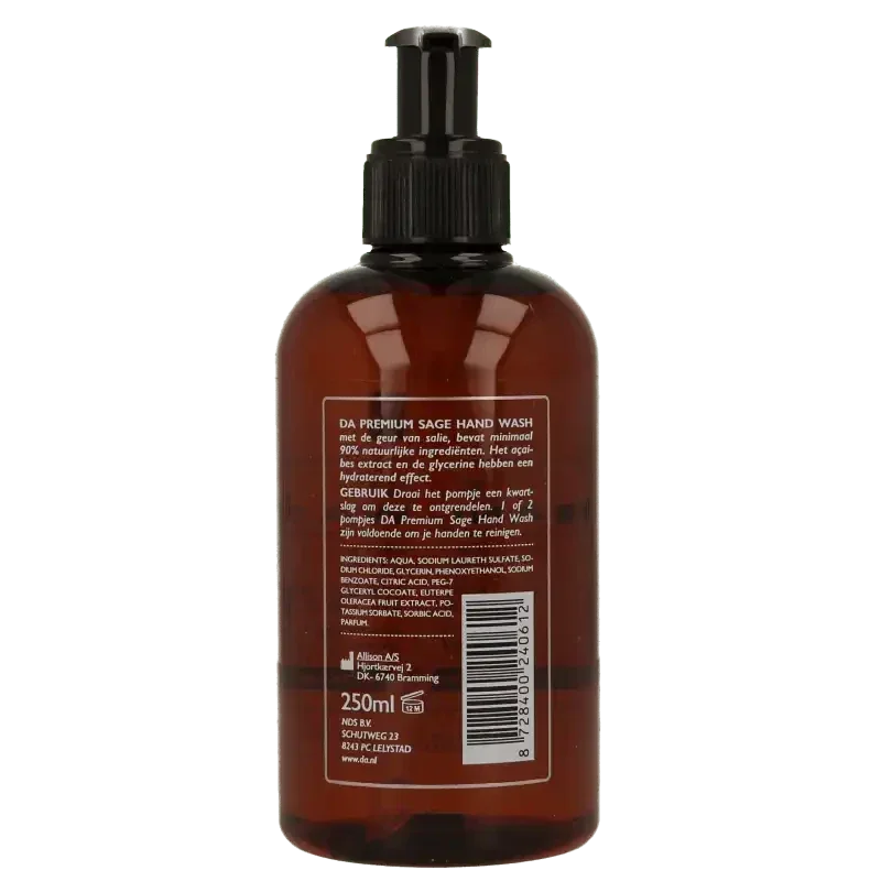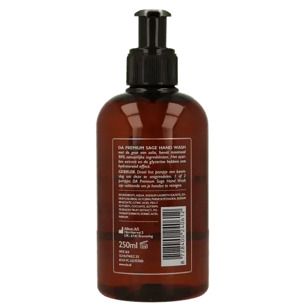 DA Premium Sage Hand Wash met de geur van salie, bevat minimaal 90% natuurlijke ingrediënten.