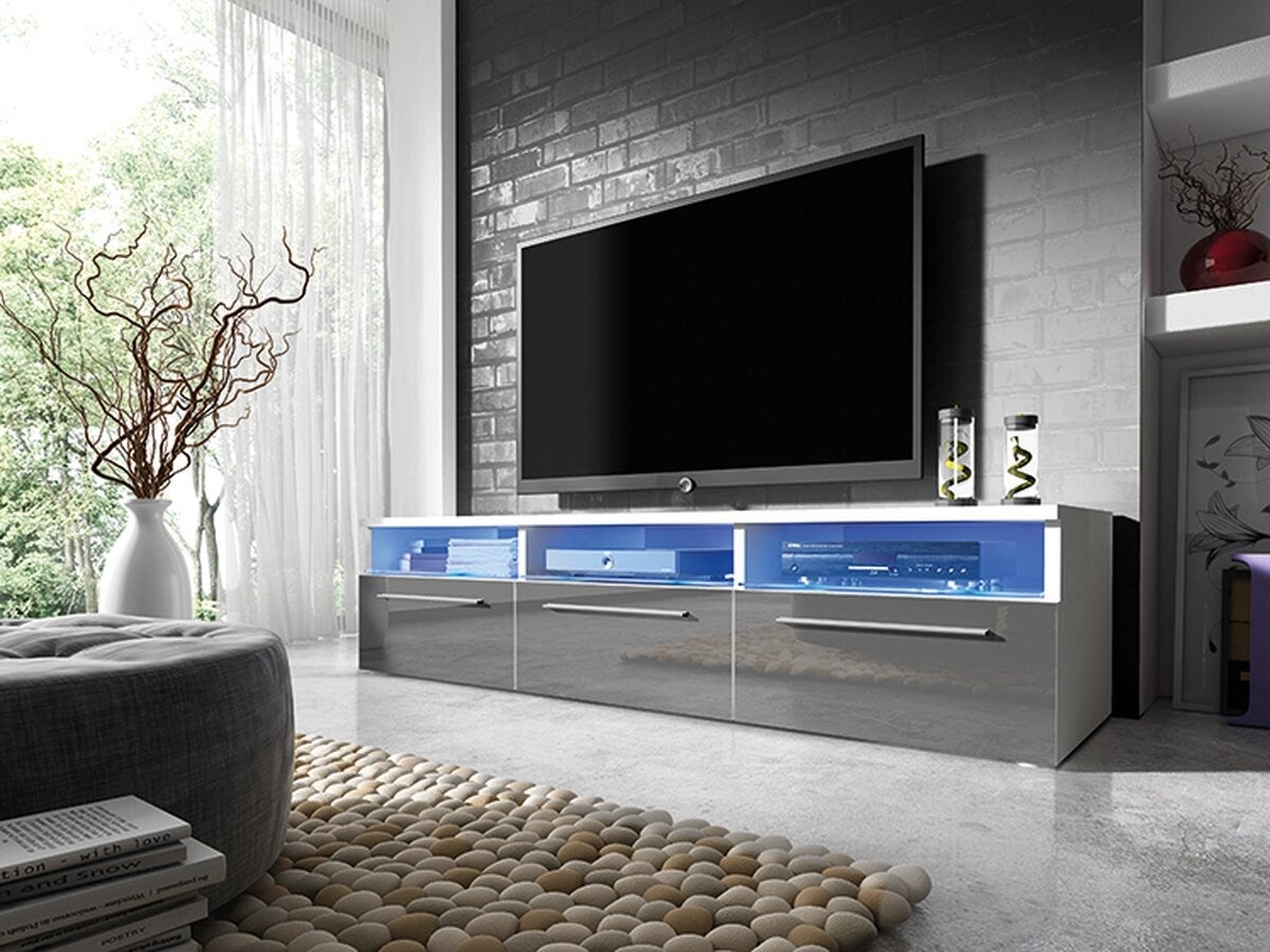 TV meubel ROMA, TV meubel, wit + grijs hoogglans, breedte 150 cm, moderne kast met lades.